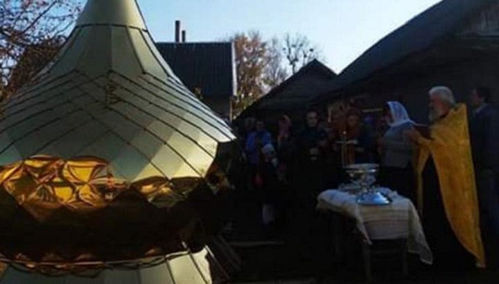 Освячення купола нового Свято-Дмитріївського храму УПЦ в селі Дунаїв. Фото: Фейсбук