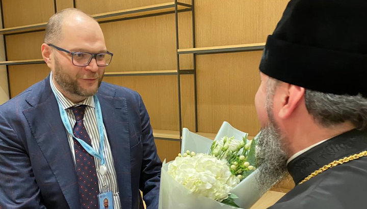 Повідомляється, що міністр культури Володимир Бородянський подякував Епіфанію Думенку за бесіду й привітав його з 10-річчям «архієрейства», вручивши, як подарунок, букет квітів.