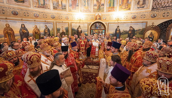 Його Блаженству співслужили намісник Києво-Печерської лаври митрополит Вишгородський і Чорнобильський Павел, керуючий справами УПЦ митрополит Бориспільський і Броварський Антоній, митрополит Білоцерківський і Богуславський Августин, митрополит Сарненський і Поліський Анатолій, митрополит Могилів-Подільський і Шаргородський Агапіт, митрополит Запорізький і Миргородський Лука, митрополит Вінницький і Барський Варсонофій, архієпископ Празький і Чеських земель Михайло, архієпископ Гурій (Кузьменко), архієпископ Бучанський Пантелеімон, архієпископ Городницький Олександр, архієпископ Феодосій Боярський, намісник обителі архієпископ Фастівський Даміан, архієпископ Олександрійський і Світловодський Боголєп, архієпископ Арцизький Віктор, єпископ Єдинецький і Брячанський Никодим, єпископ Васильківський Микола, єпископ Золотоніський Іоанн, єпископ Житомирський Віктор, єпископ Ладиженський Сергій, гості у священному сані та духовенство монастиря.