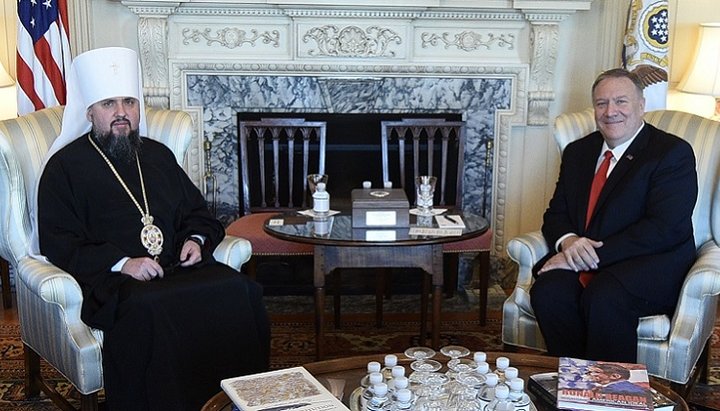 Що стосується зустрічі з Держсекретарем США Майком Помпео, яка відбулася 22 жовтня 2019 року в рамках візиту глави ПЦУ в США, і скасування анонсованої зустрічі Помпео з главою ВЗЦЗ РПЦ митрополитом Волоколамським Іларіоном (Алфеєвим) Епіфаній підкреслив, що «з ким зустрічатися – це особиста справа держсекретаря».