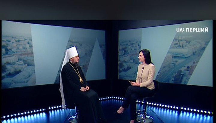 Глава ПЦУ Епіфаній Думенко в ефірі телеканалу «UA Перший». Фото: Facebook