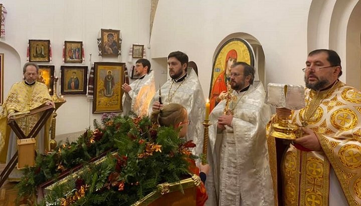 «У день Різдва Господа нашого Іісуса Христа в теплій Софії була відслужена Божественна літургія свт. Іоанна Златоуста. Напередодні, ввечері, було вчинено всенічне бдіння з літією. Святу літургію в день Різдва здійснили: настоятель храму прот. Петро Ландвітович, архімандрит Кирило Говорун, прот. Георгій Коваленко, свящ. Іван Сидор, свящ. Михайло Альмес, дияк. Сергій Шанта в спільній молитві з побожною громадою храму», – йдеться в повідомленні «клірика» ПЦУ.