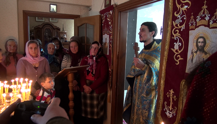 Після захоплення храму віруючі села Мала Любаша моляться в будинку свого настоятеля. Фото: СПЖ