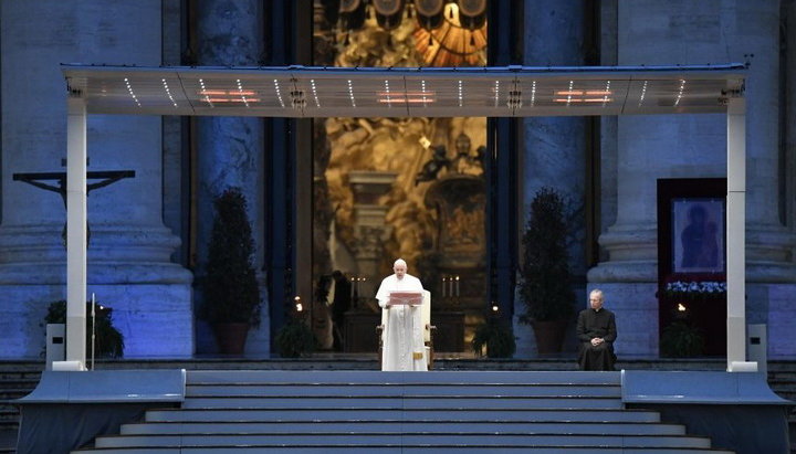 Понтифік виступав на сходах перед собором Святого Петра у Ватикані один, під дощем, на порожній площі.