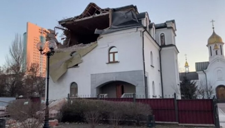 Вибухова хвиля зруйнувала фасад недільної школи та покрівлю. Уламки також потрапили в будівлю храму.