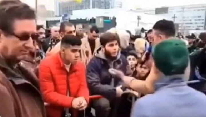 Мусульманин на мітингу у Німеччині. Фото: скріншот відео t.me/churchpeople
