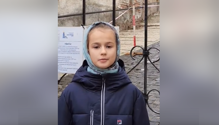 Дівчинку було охрещено в Лаврі, причащається і молиться там. Тому вона дивується, навіщо відбирають храми у Православної Церкви: «Я прийшла сюди, а ворота зачинені. Я не розумію, хто це зробив і для чого?».