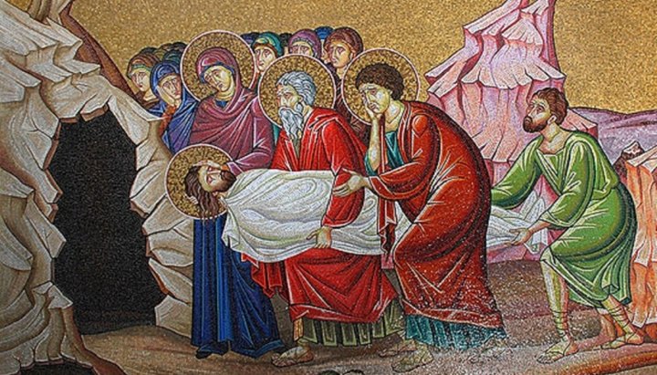Положення в труну. Мозаїка храму Воскресіння Христового в Єрусалимі. Фото: Православие.Ru