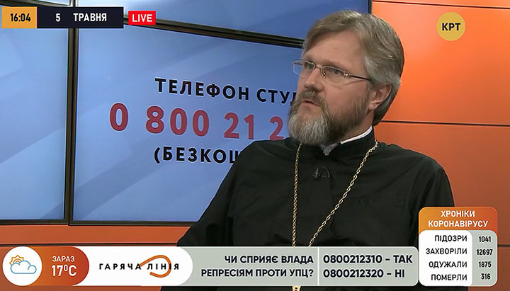 Заступник глави Відділу зовнішніх церковних зв'язків УПЦ протоієрей Миколай Данилевич. Фото: скріншот відео на сторінці каналу КРТ в Facebook