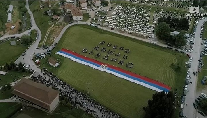 Віруючі в Беране вишикувалися в напис «Ласкаво просимо, владико». Фото: кадр з відео IVANGRAD studio