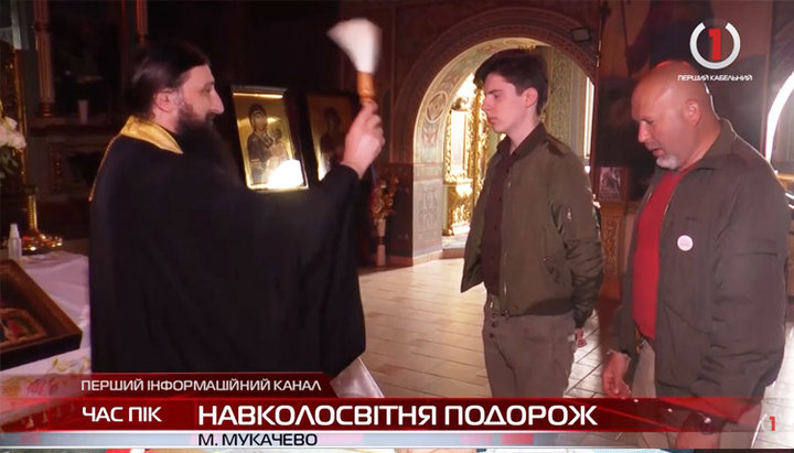 Архімандрит Тихон (Лютянський) благословив благодійний кругосвітній автопробіг. Фото: скріншот відео на YouTube-каналі «Перший Кабельний»
