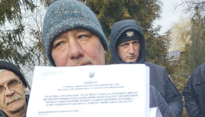 Депутат Бучанської міськради В'ячеслав Кухаренко – незмінний учасник спроб захоплення храму в с. Блиставиця. Фото парафії св. Параскеви