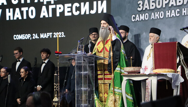 Патріарх Сербської Православної Церкви Порфирій на церемонії в місті Сомборі, присвяченій 24-м роковинам початку агресії НАТО проти Югославії, заявив, що Сербія стикається з тиском сил, які хочуть підштовхнути країну як до внутрішніх конфліктів, так і до зіткнень з іншими державами, повідомляє spc.rs.