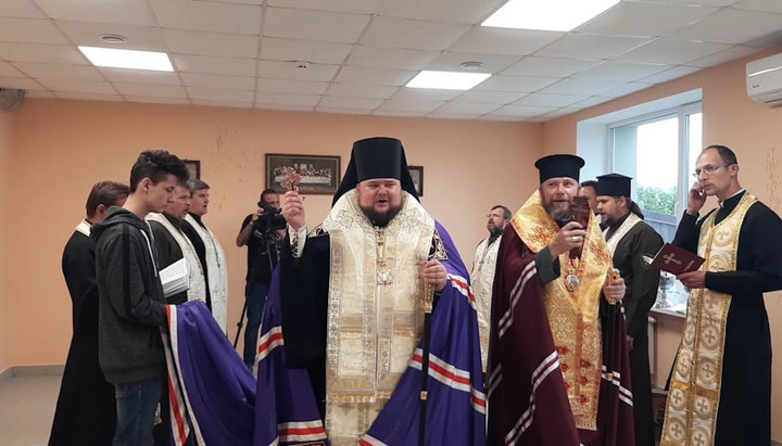 Ректор Київських духовних шкіл архієпископ Сильвестр постриг у чернецтво чотирьох студентів академії та семінарії.