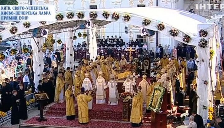 Святкова літургія на площі перед Успенським собором в День Хрещення Русі. Фото: скріншот / відео / «Інтер»