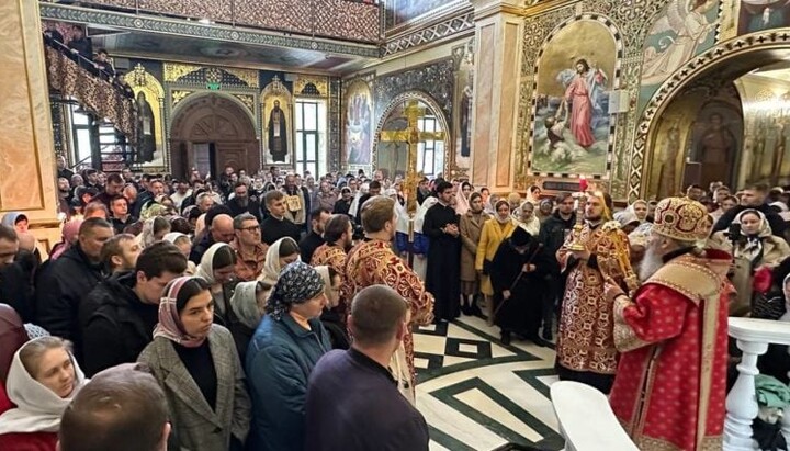 Предстоятелю УПЦ співслужили керуючий справами УПЦ митрополит Бориспільський і Броварський Антоній, єпископ Ірпінський Лавр, єпископ Бородянський Марк, духовенство Лаври та гості у священному сані.