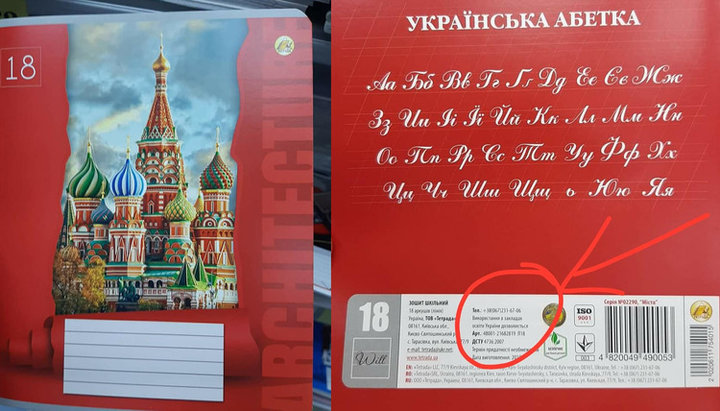 Українці обурилися продажем зошитів із зображенням московського храму Василія Блаженного, запідозривши в цьому свідому рекламу «країни-агресора». Фотографію придбаного в Рівному зошита українського виробництва 17 вересня 2020 опублікував Facebook-блог «Знай більше».