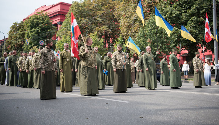 Капелани ПЦУ на марші «Захисників України» в Києві. Фото: duhovnyfront.com.ua