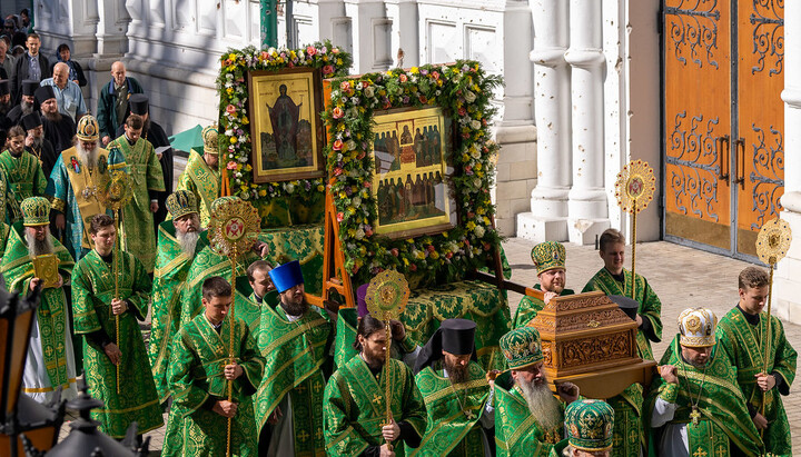 Божественну літургію в Успенському соборі Лаври очолив митрополит Лука у співслужінні намісника обителі митрополита Святогірського Арсенія, інших архієреїв, а також лаврського духовенства та священнослужителів з інших єпархій.