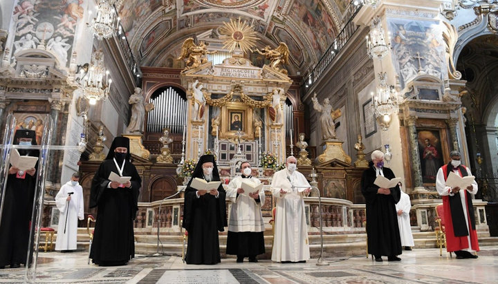 У ній також брали участь папа римський Франциск і патріарх Константинопольський Варфоломій. Це, природно, викликало справедливі зауваження про неприпустимість подібних дій. Але замість визнання очевидного канонічного порушення керівництво ВЗЦЗ випустило відеозаяву, в якій постаралося виправдати дії єпископа Амвросія. Співробітник ВЗЦЗ ієромонах Стефан (Ігумнов) досить незграбно спробував пояснити глядачам, що молитва єпископа Амвросія ... не була молитвою.