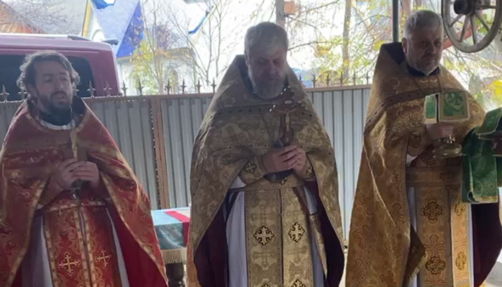 Громада захопленого храму в Лузі провела літургію у дворі настоятеля