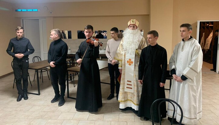 Можна припустити, що вітали полонених із днем святого Миколая, оскільки на фото зображена людина у відповідному костюмі. Поруч із ним – хлопець у стихарі, скрипаль та вокальний квартет. В іншому місці встановлено святкову ялинку.