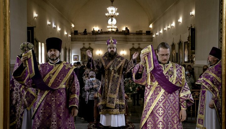 Єпископ Бішкекський і Киргизстанський Даніїл звершує Божественну літургію в Свято-Воскресенському кафедральному соборі Бішкека Фото: pravoslavie.kg