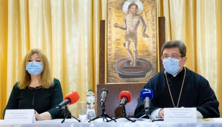 Прес-конференція в Сумському єпархіальному управлінні УПЦ за підсумками благодійної акції. Фото: portal-pravoslavie.sumy.ua