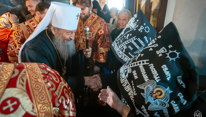 Блаженніший благословляє схимонахиню Флорівської обителі в Києві. Фото: news.church.ua