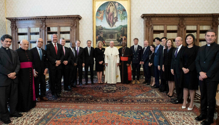 Папа римський Франциск із членами Ради інклюзивного капіталізму. Фото: regnum.ru