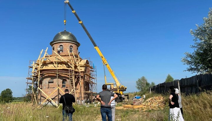 Установка купола на храм Межигірського монастиря УПЦ. Фото: сторінка монастиря в Facebook.