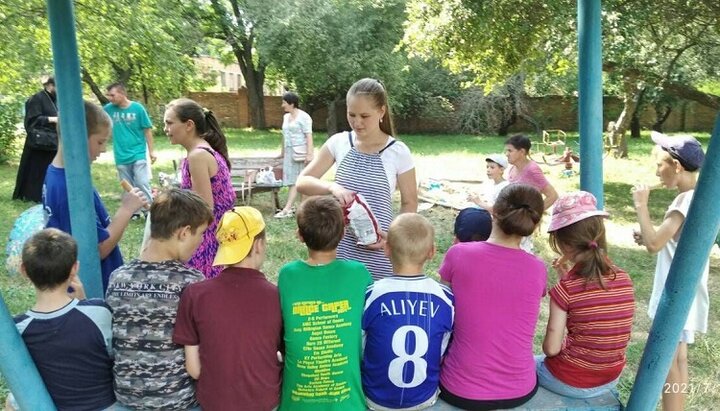Після бесіди волонтери УПЦ провели для дітей ігри в футбол, бадмінтон, стрибки на скакалці, будівництво з конструктора, катання на гойдалках. Також вони привезли продукти для бутербродів, солодощі, частину з яких приготували своїми руками, і морозиво.