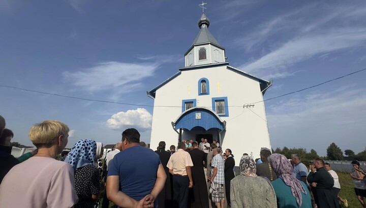 Біля храму УПЦ у селі Жовкині Вараського району Рівненської області. Фото: Просвіта. Володимиреччина. Район