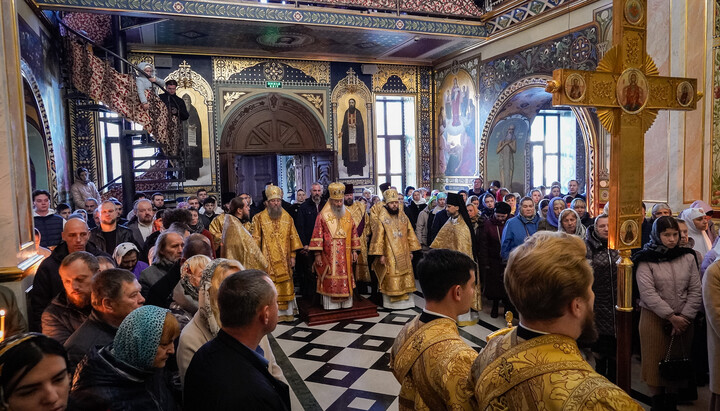 Предстоятелю співслужили керуючий справами УПЦ митрополит Бориспільський і Броварський Антоній, єпископ Бородянський Марк, духовенство обителі та гості у священному сані.