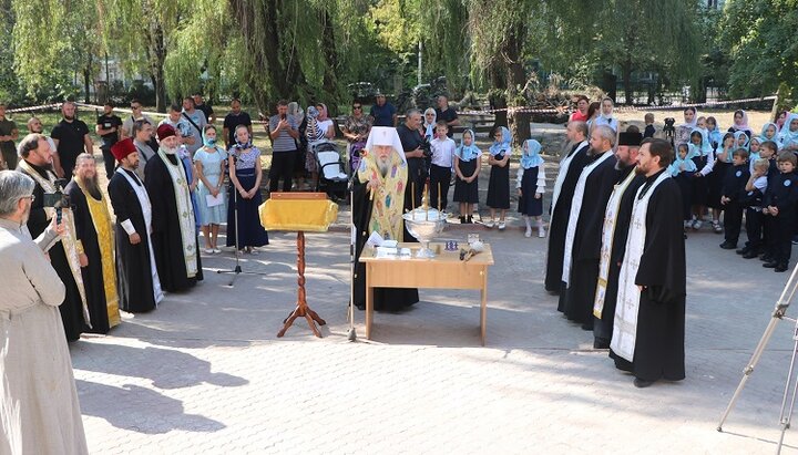 Митрополит Іриней освячує Свято-Успенський ліцей у Дніпрі. Фото: eparhia.dp.ua