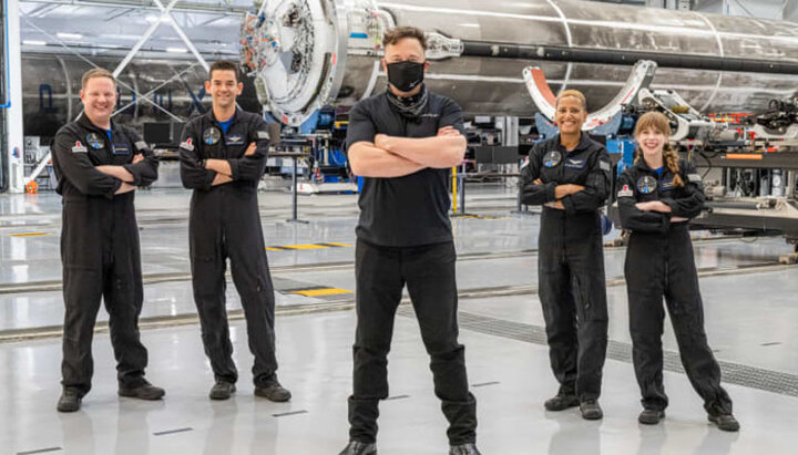 Засновник і генеральний директор SpaceX Ілон Маск з екіпажем. Фото: John Kraus/Inspiration4/cnbc