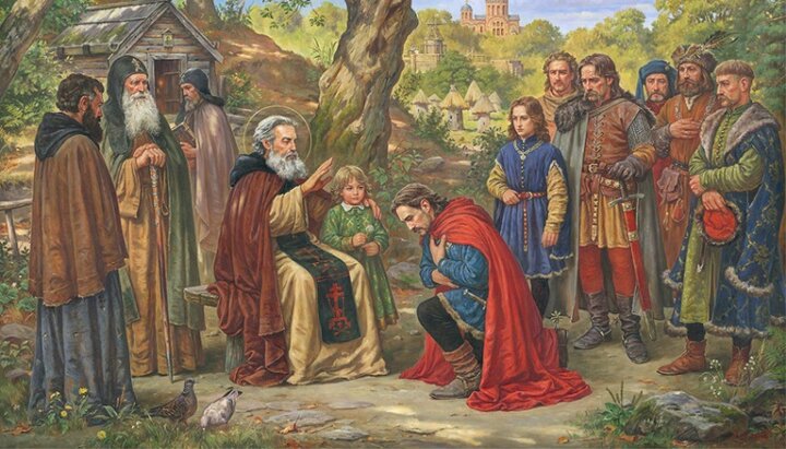 Картина «Благословення Святого Феодосія (Князя Федора Острозького). Києво-Печерська лавра. 1443 рік» художника Артура Орленова. Фото: www.history-ua.org