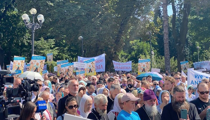 Віряни УПЦ під стінами ВР у день візиту патріарха Варфоломія. Фото: СПЖ