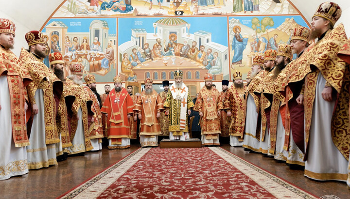 Його Блаженству співслужили: голова Навчального комітету при Священному Синоді УПЦ митрополит Ніжинський і Прилуцький Климент, митрополит Хмельницький і Старокостянтинівський Віктор, ректор КДАіС архієпископ Білогородський Сильвестр, проректор з виховної роботи архієпископ Згурівський Амвросій, єпископ Ірпінський Лавр, єпископ Бородянський Марк, а також члени професорсько-викладацького складу, студенти академії та гості у священному сані.