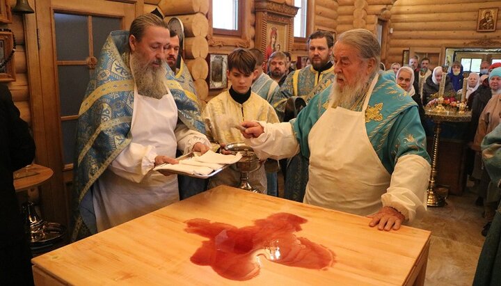 Митрополит Іриней освячує престол у храмі на честь ікони «Скоропослушниця». Фото: eparhia.dp.ua