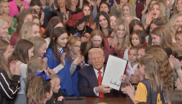 «Цим указом війну проти жіночого спорту закінчено», – заявив Трамп на церемонії підписання у Східній залі Білого дому, де були присутні законодавці та спортсменки, які підтримували заборону, включаючи колишню плавчиню Райлі Гейнс.