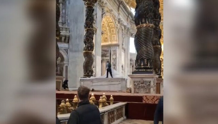 Чоловік заліз на престол у храмі апостола Петра. Фото: regnum