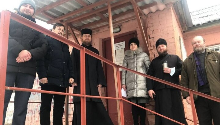Духовенство та парафіяни УПЦ біля пункту збору донорської крові у Прилуках. Фото: orthodox.cn.ua