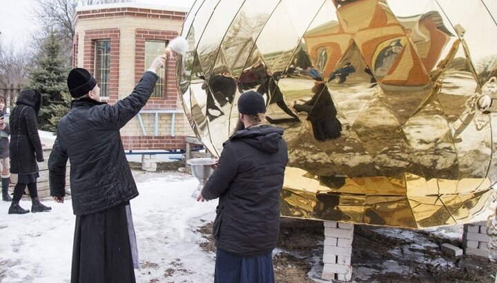 Освячення купола споруджуваного храму УПЦ у Котлярах. Фото: eparchia.kharkov.ua