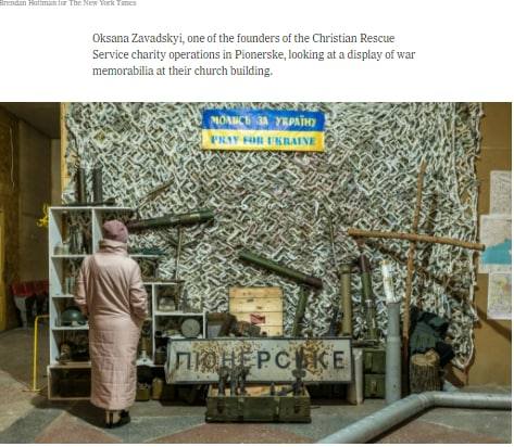 У Мережі опублікували фотографію з «виставки» військових трофеїв, яку влаштували безпосередньо у греко-католицькому храмі села Піонерське Донецької області. Фотографію розмістила на своїй сторінці у Facebook журналістка Мирослава Бердник.