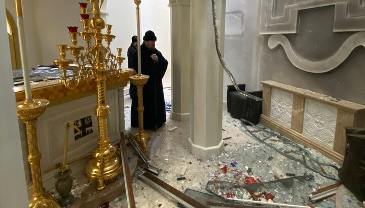 У храмі вибиті вікна та двері, уламками побило стіни храму, а також пошкоджено церковне начиння.