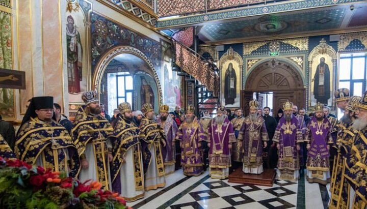 Предстоятелю УПЦ співслужили намісник Києво-Печерської лаври митрополит Вишгородський та Чорнобильський Павло, керуючий справами УПЦ митрополит Бориспільський та Броварський Антоній, архієпископ Бучанський Пантелеїмон, єпископ Баришівський Віктор, єпископ Білогородський Сильвестр, епископ Бородянський Марк і духовенство обителі.