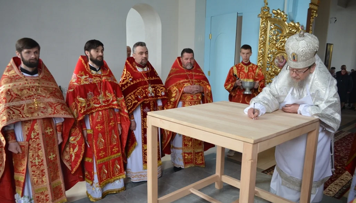 З благословення Митрополита Київського і всієї України Блаженнішого Онуфрія у хрестовину святого престолу заклали мощі святого священномученика Володимира. Після освячення було звершено першу Божественну літургію архієрейським чином. На малому вході настоятеля нового Благовіщенського храму ієрея Романа Васильця владика Анатолій звів у сан протоієрея.