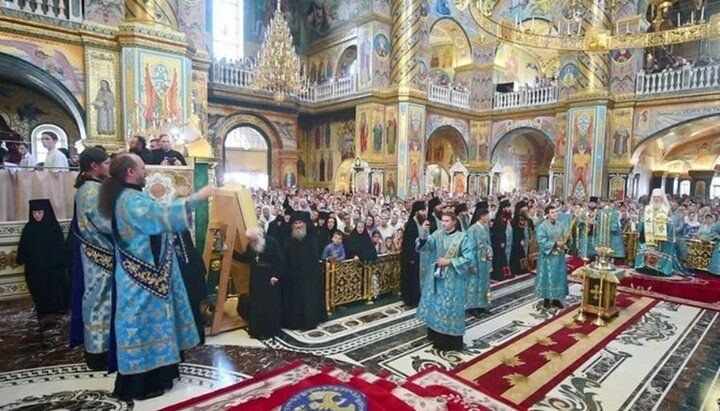 5 серпня під час Божественної літургії у Почаївській лаврі тисячі богомольців виконали тропар Почаївської ікони Божої Матері. Відео розмістили на офіційному каналі Української Православної Церкви.