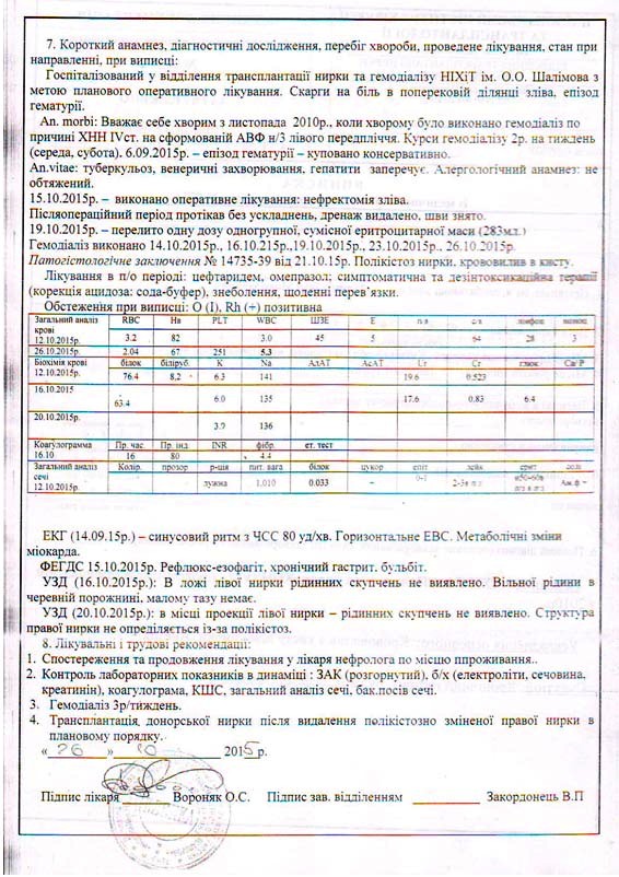 У священика – полікістоз нирок, який виявили у 2010 році. 15 жовтня 2015 року його стан погіршився і довелося видалити ліву нирку. Тепер необхідно видалити і праву нирку. Родинного донора немає. Республіканський науково-практичний центр радіаційної медицини та екології людини (м.Гомель, Білорусь) погодився прооперувати священика. Вартість операції складає $ 65 400.
